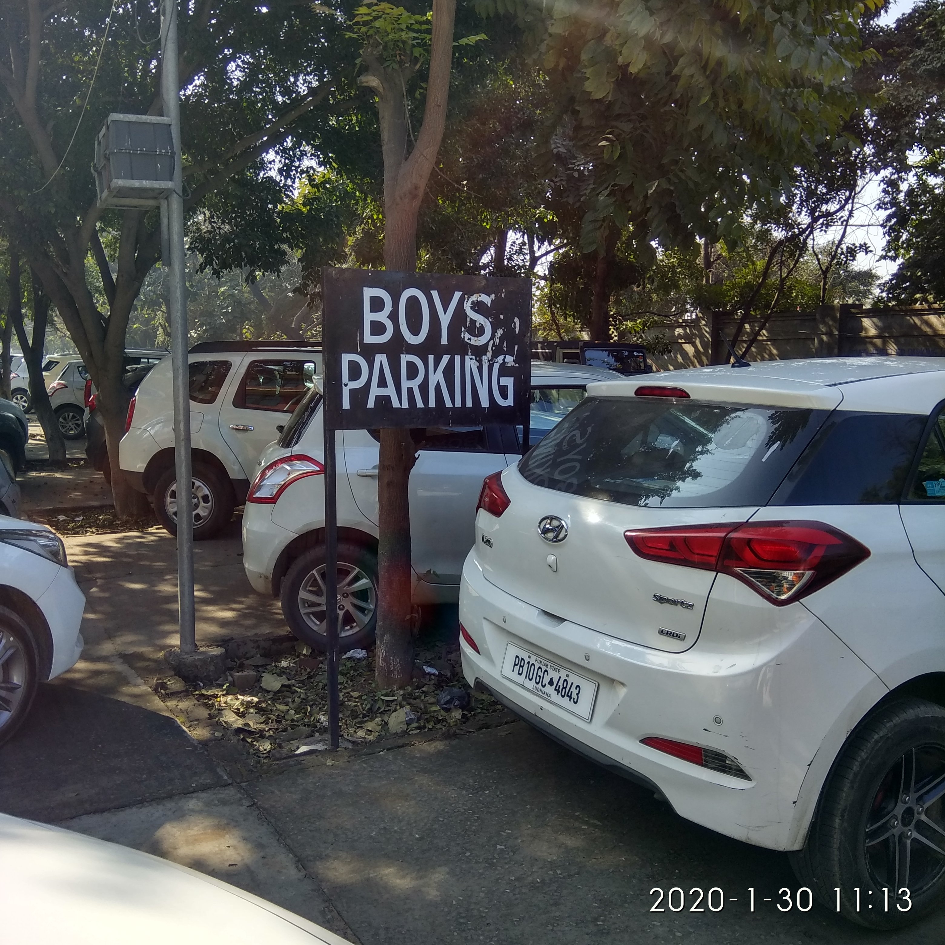 Boys parking at entrance of college.jpg